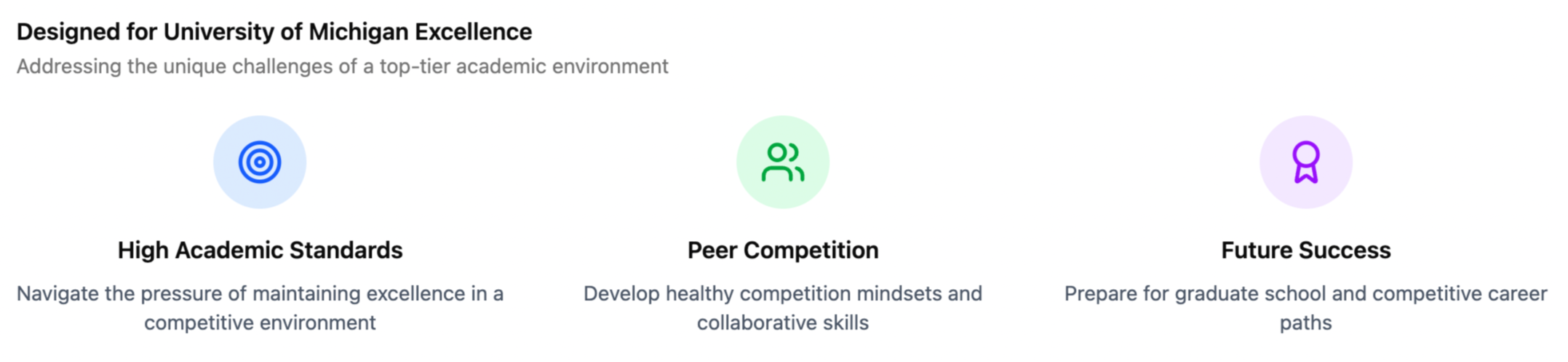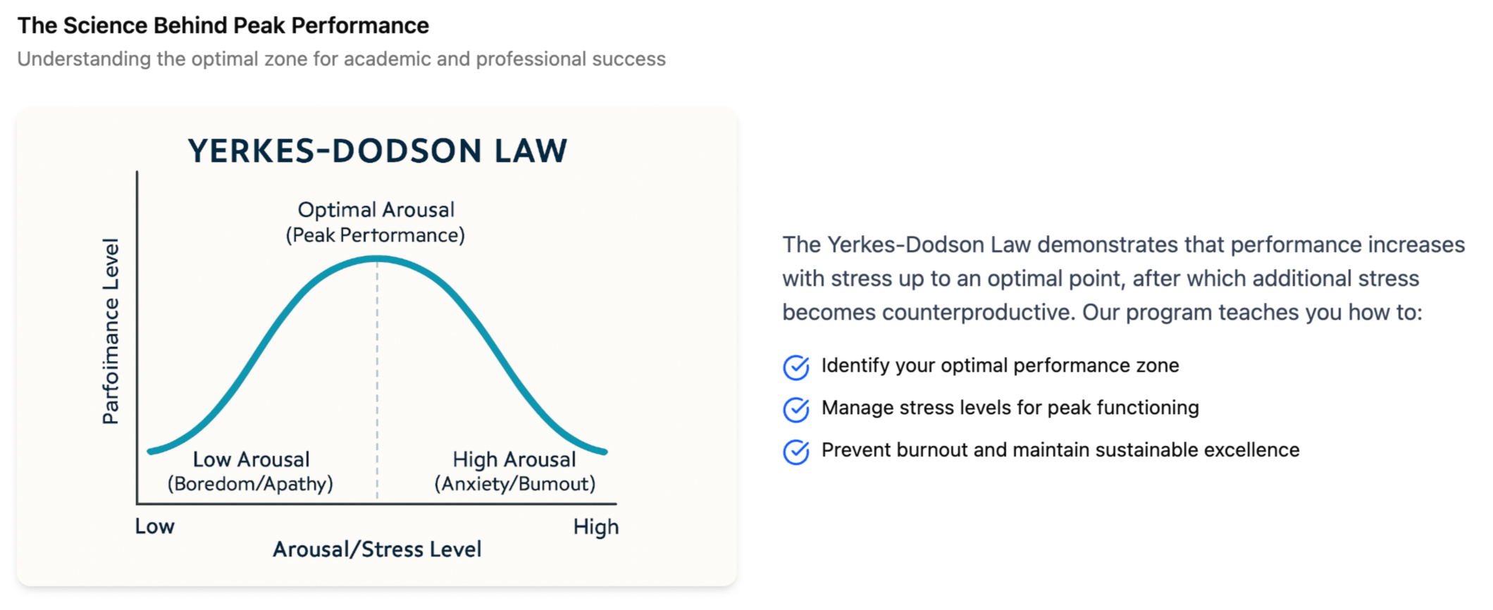 Evidence-based strategies designed specifically for high-achieving college students at one of the nation's most competitive universities. Master anxiety, optimize performance, and thrive academically, professionally, and socially.