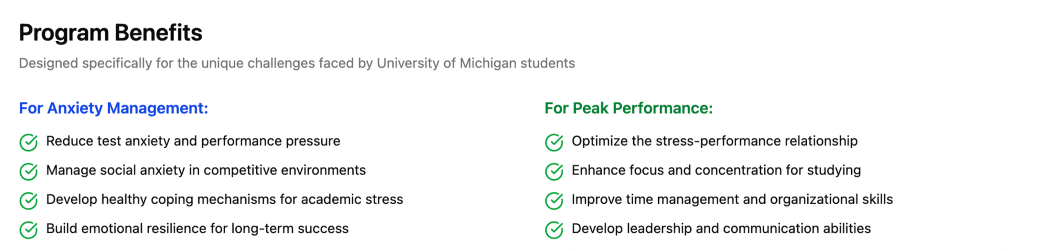 Take the first step toward mastering anxiety and achieving peak performance at the University of Michigan.